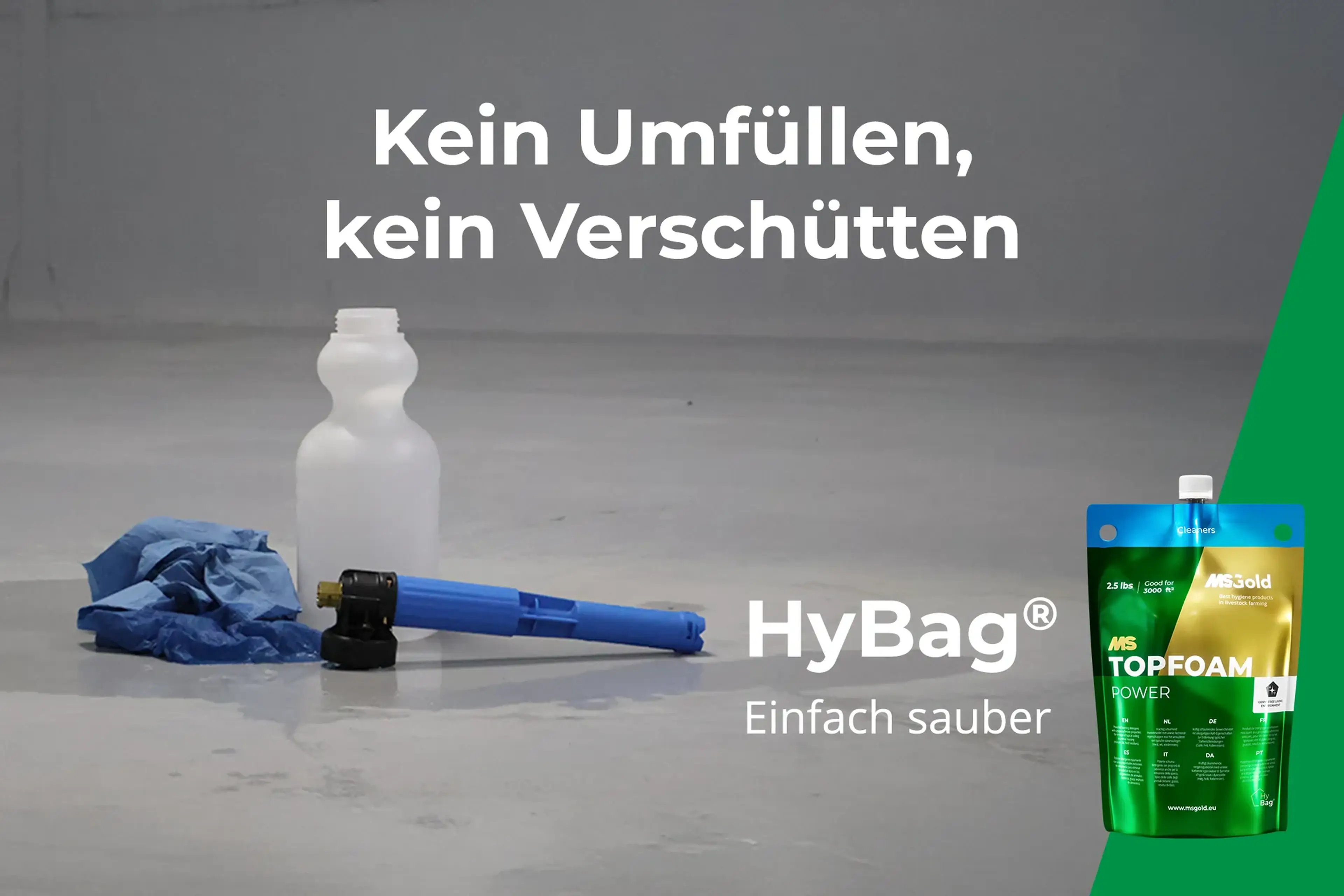 Kein schweres Heben. Keine kniffligen Einstellungen. Kein riskantes Nachfüllen. Einfach einen HyBag® einklicken, abdrücken und loslegen.